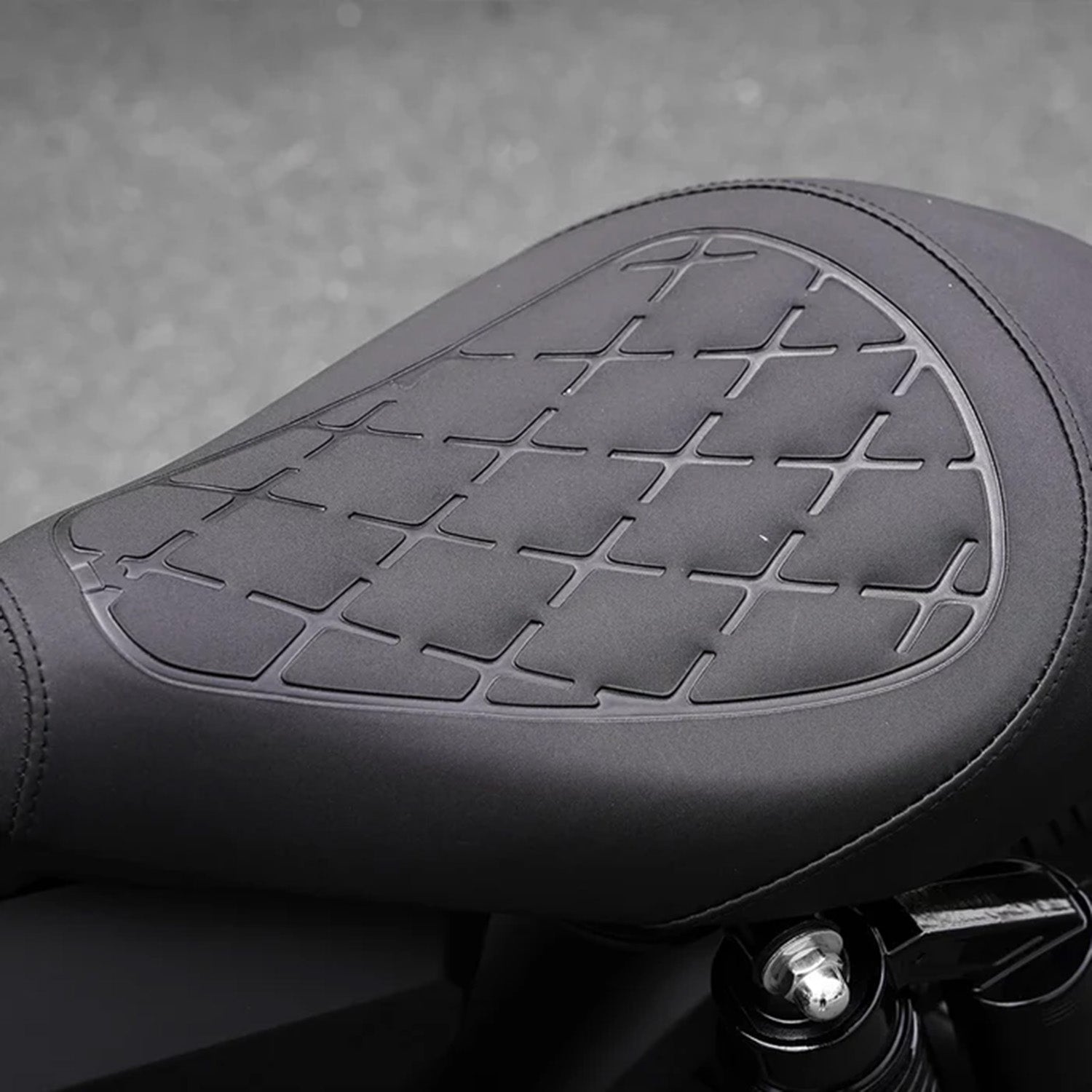 Features 20×4.5" knobby fat tires with stylish colored rims for excellent traction on city streets, dirt trails, and uneven surfaces. The inverted front suspension system (borrowed from high-performance motorcycles) and rear dual air suspension provide superior shock absorption and steering precision. A lockable front suspension allows riders to adjust based on road conditions.