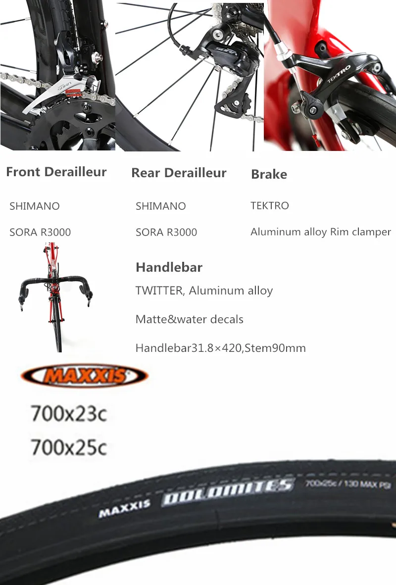 Light Weight 700C Carbon Fiber SORA 18 Speed Road Bike Bicycle With Rim Brake