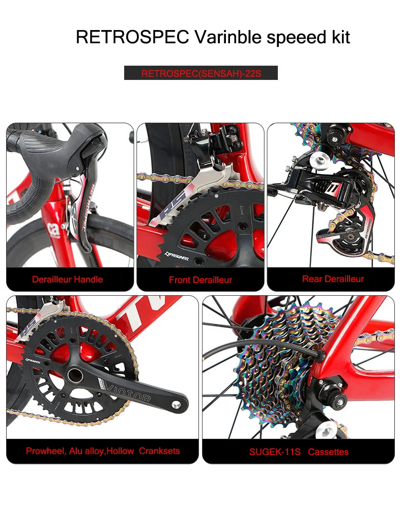 Hot Sale Professional Road Bike Carbon Thunder-V Brake Bicycle Light RS-22speed 700C Tire Carbon Bicycle Frame Bicicleta