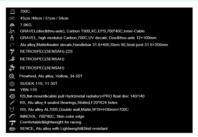 GRAVEL, high modulus Carbon Fiber,700C,UV decals, disc&thru-axle 12×100mm |