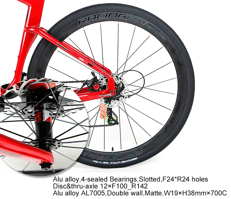RS, Alu alloy,4-sealed Bearings,Slotted,F24*R24 holes,Disc&thru-axle 12×F100_R142 |