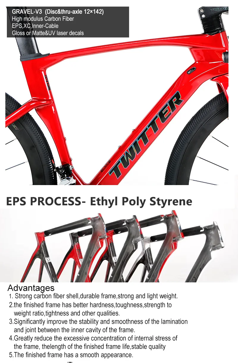 GRAVEL-V3(disc&thru-axle 12×142), high modulus Carbon fiber,XC,Inner-Cables,Gloss+UV laser colorful decals |