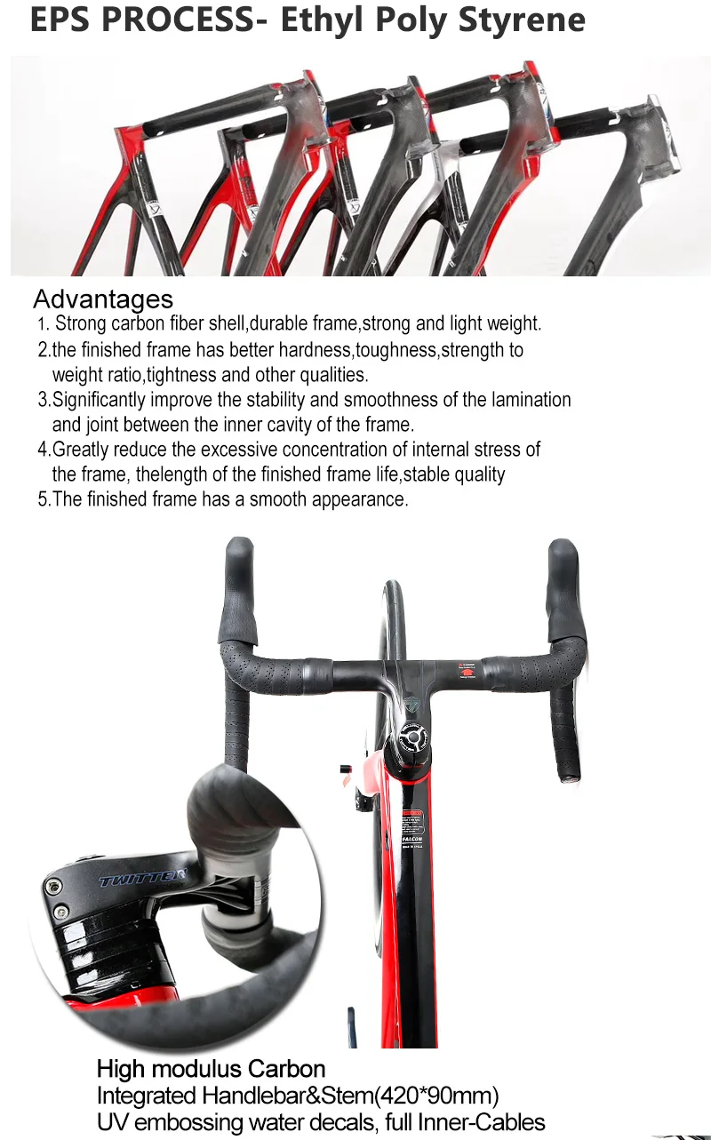 TW, high modulus Carbon fiber, Integrated Handlebar&Stem(420*90mm),UV embossing water decals, full Inner-Cables