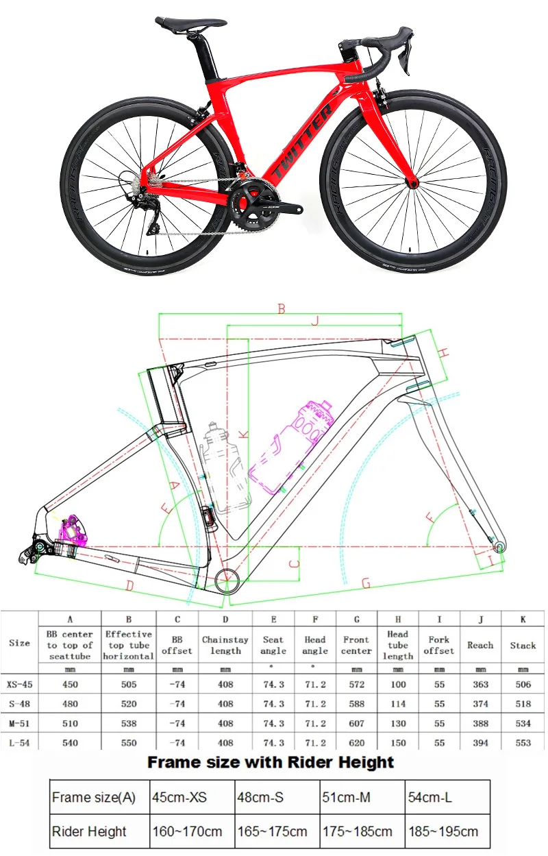 High Quality Twitter Road Bikes for Men Bicycle Professional Racing 700x25c Tire Carbon Fiber Frame Road Bike Cycle