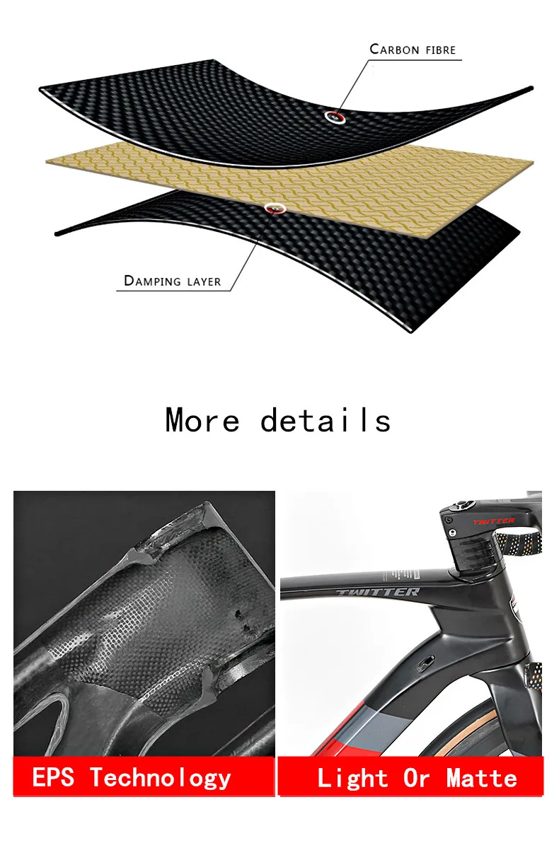 TW, high modulus Carbon Fiber, Integrated Handlebar&Stem(420*90mm),UV embossing water decals, inner-Cables