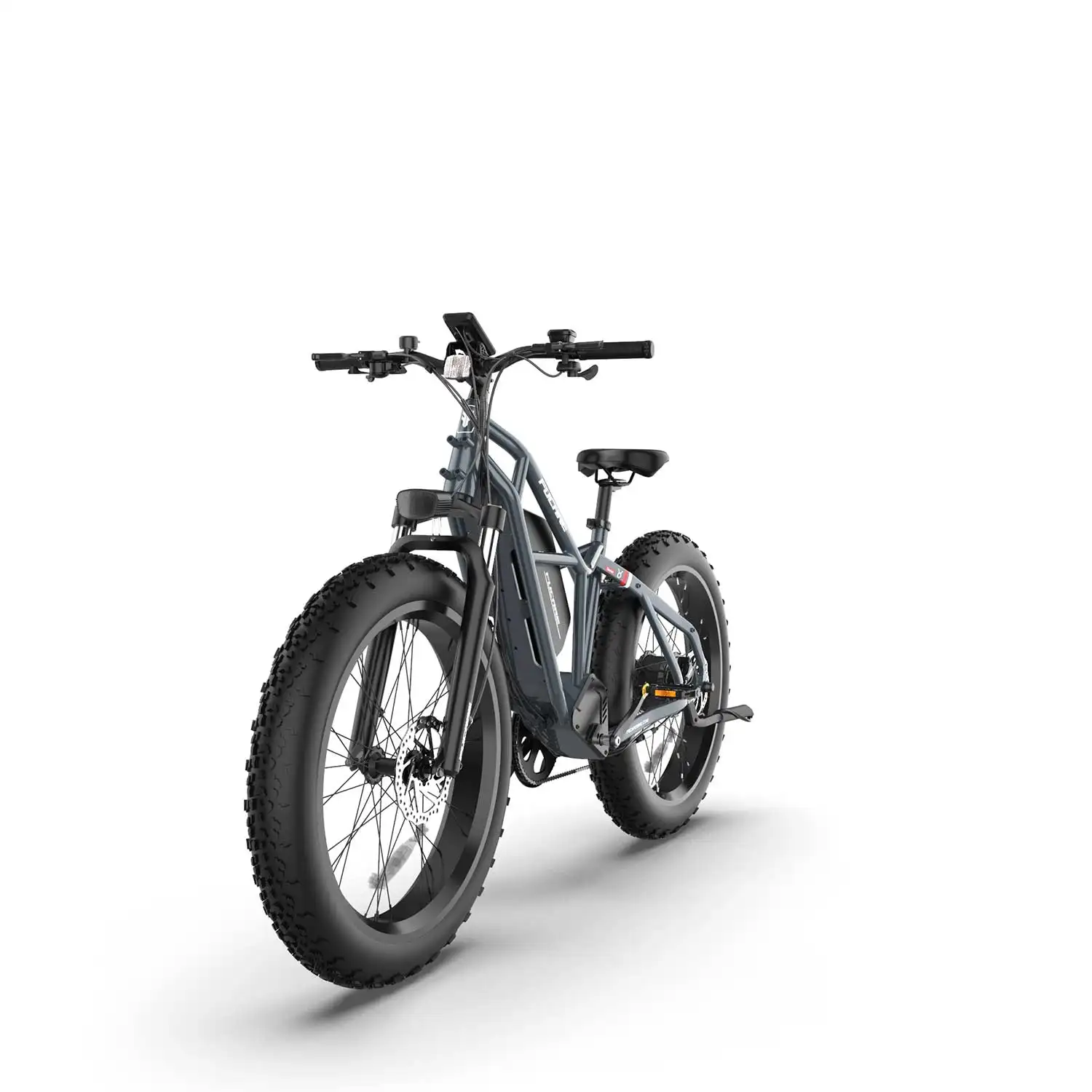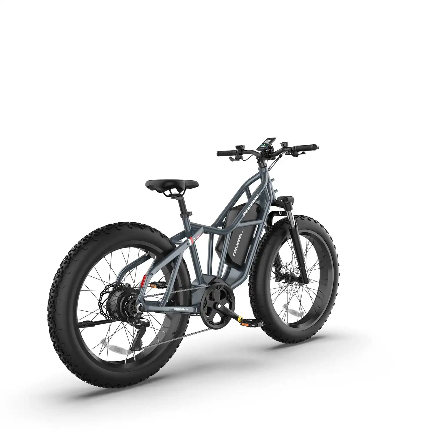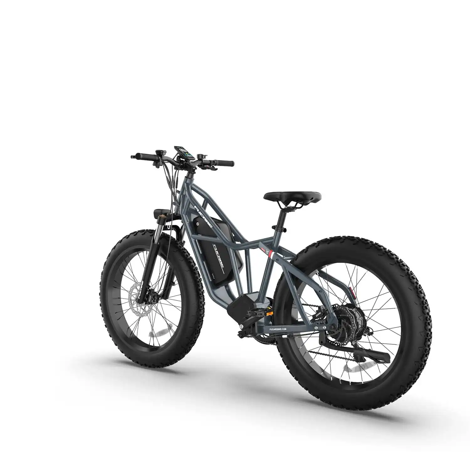 Introducing the Fucare Taurus Electric Mountain Bike: built for rugged landscapes with a 750W motor, hydraulic brakes, and 400 lbs payload. 26-inch fat tires offer exceptional traction. A 1200Wh LG battery allows journeys of 40-90 miles. Fucare's Stability Triangle Design ensures safety and strength. Shimano 8-speed transmission enables responsive gear changes for off-road confidence.
