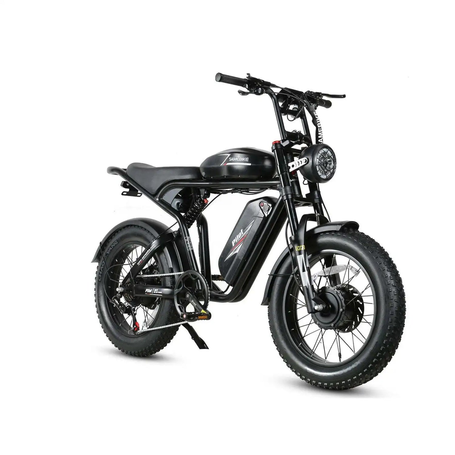 The M20-III 2000W Electric Bicycle features a 4.2-inch color center-mounted LCD screen that clearly displays riding information (including speed, mileage, battery, gear) and bike status in any environment. Ergonomic curved handle design makes riding easier. Equipped with dual 48V 36AH batteries for extended range, high-torque dual 2000W motors for exceptional traction and stability, hydraulic disc brakes for reliable stopping, and 20-inch fat tires for versatile riding on various terrains. Comes with free accessories including E-bike Full Fenders and 8-in-1 Multi-Functional Kit. Supported by a 12-month warranty.