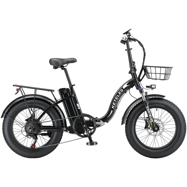 Model: KF9 (20”Fat E-Bike). Frame: 6061 Aluminum Alloy Folding Frame. Fork: Aluminum Alloy Crown Suspension Fork. Motor: 48V 1000W Brushless Geared Rear Hub Motor. Max Speed: around 40km/h. Battery: 48V 18Ah Lithium Battery. Range: Fully Electric Mode Range: around40km. PedalAssist Mode Range: around70km. Brake: Mechanical Disc Brake with power cut-off Feature. Gear: Shimano 7-Speed. Display: Smart LCD Color display that shows speed, battery status, pedal assist level, etc. Throttle: Twist Throttle on the Right side of Handlebar. Headlight: LED Headlight powered by battery. Tire: 20″x4.0″ inch Fat Tire.