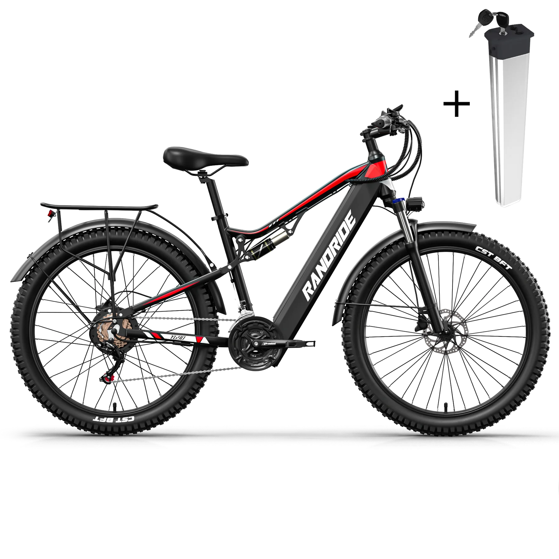 The RANDRIDE YG90B Electric MTB is designed for adults, offering a powerful 1000W brushless motor, dual suspension systems for maximum comfort, a high-capacity 48V 17AH lithium battery, and advanced features including a Color LCD display and a Shimano 21-speed system to deliver a thrilling off‐road riding experience.