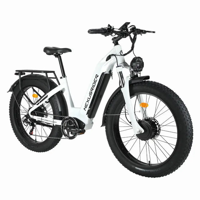 DUAL MOTOR POWER: Features a 48V/1000W dual drive motor, delivering a combined power of 2000W for exceptional speed and performance. HIGH SPEED: Capable of reaching speeds up to 31KM/H, allowing you to navigate snowy terrains swiftly and efficiently. PREMIUM BRAKING SYSTEM: OYISLRND hydraulic disc brakes and aluminum alloy front fork ensure top-notch control and safety. ROBUST FRAME: Crafted from durable aluminum alloy, the frame offers lightweight strength and resilience against harsh conditions. Fat Tire E Bikes: The 26'' *4.0'' fat tire with tread patterns has a wider contact area which enhances flexibility, excellent grip, wear resistance and anti-skid function to let you safer in rainy day, The adult electric bicycles provide 3 working modes, Pure electric mode, pedal-assist mode, classic bike mode. You can comfortably ride on the beach, mountain, gravel, mud, puddles and other diverse terrain by using this fat tire electric bike. COMPREHENSIVE DISPLAY: Integrated instrument panel shows mileage, speed, and battery life; also includes turn signals and alarm for added security. Excellent Performance in 3 Riding Models: Pure electric mode (40-50km battery range); Pure manpower mode; Pedal assist mode (60-90km battery range); Customize your ride performance with 3 riding modes and Shimano 7-speed, you can enjoy cycling in each mode. Support 180kg (396LBS). Suitable height between 165cm (65in) and 195cm (77in). The perfect disc brakes and lighting system fully protect your safety. Smart Digital LCD Display: The Intelligent LCD display keeps track of real-time speed, battery level, pedal assist level and mileage. Mileage 5 Speed LCD display computer makes it better for you to know clearly about the per hour speed and the whole distance you have ridden, and also you can know the battery remaining capacity of your bike. You can have more choice for 5 speed mode than normal. This electric mountain bike also comes with a bright LED headlight, making you visible and safe at night. Easy to Assemble: This e-bike comes 85% pre-assembled. A video guide is available in the product page. Comes with a rear rack and mudguards. Good Service & Warranty: Our Ebike comes with shelf + fender + lock + pump + controller bag. With a 12 months warranty for battery, charger, motor and controller. 24 hours Quickly Response. 【UPGRADE】:Electric bike upgrades are based on buyers' feedback and experience! We have upgraded the headlights of electric bicycles and upgraded the color screen instruments!