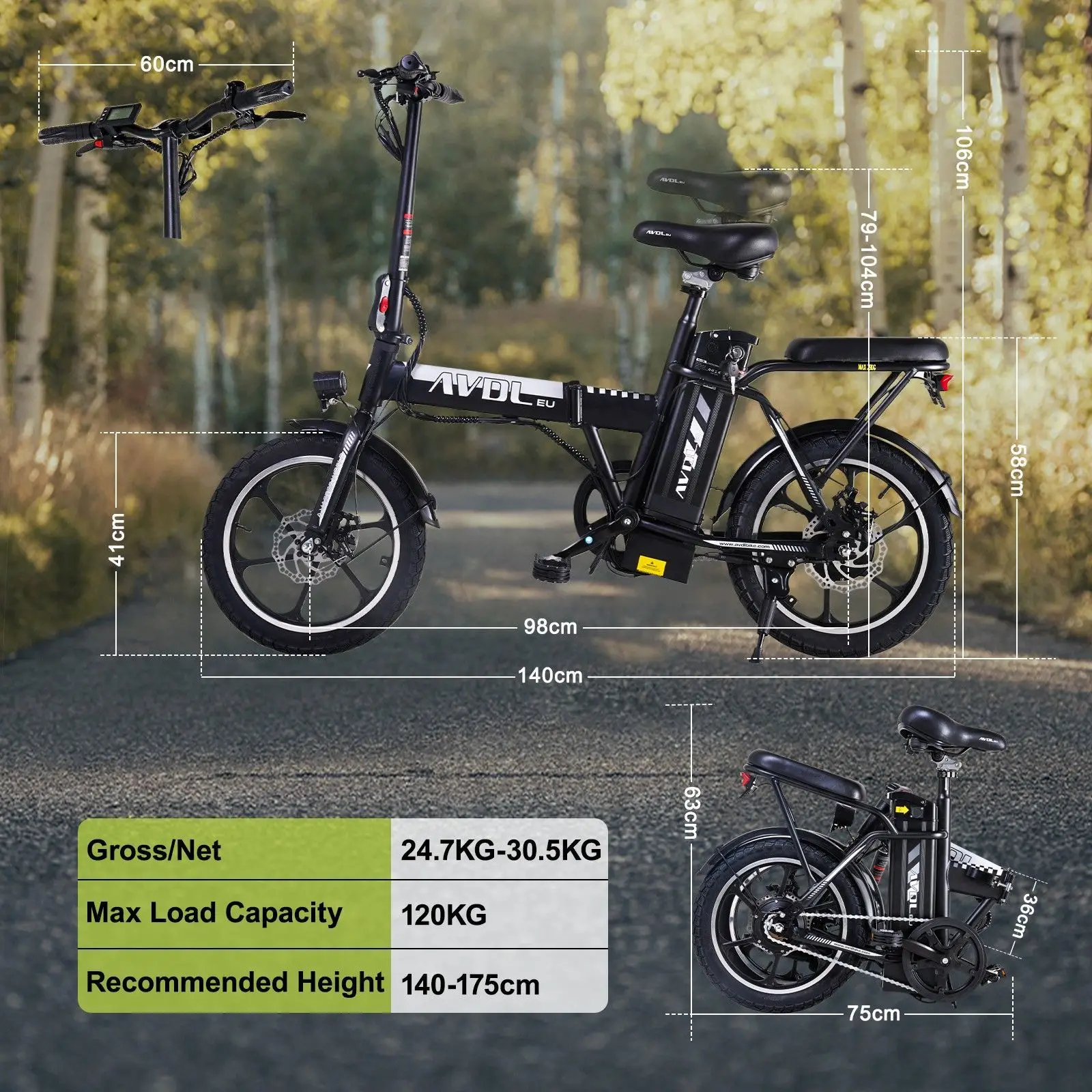 "250W Foldable Electric Bike #16 Speed #36V #11.4Ah #40-70km Range"