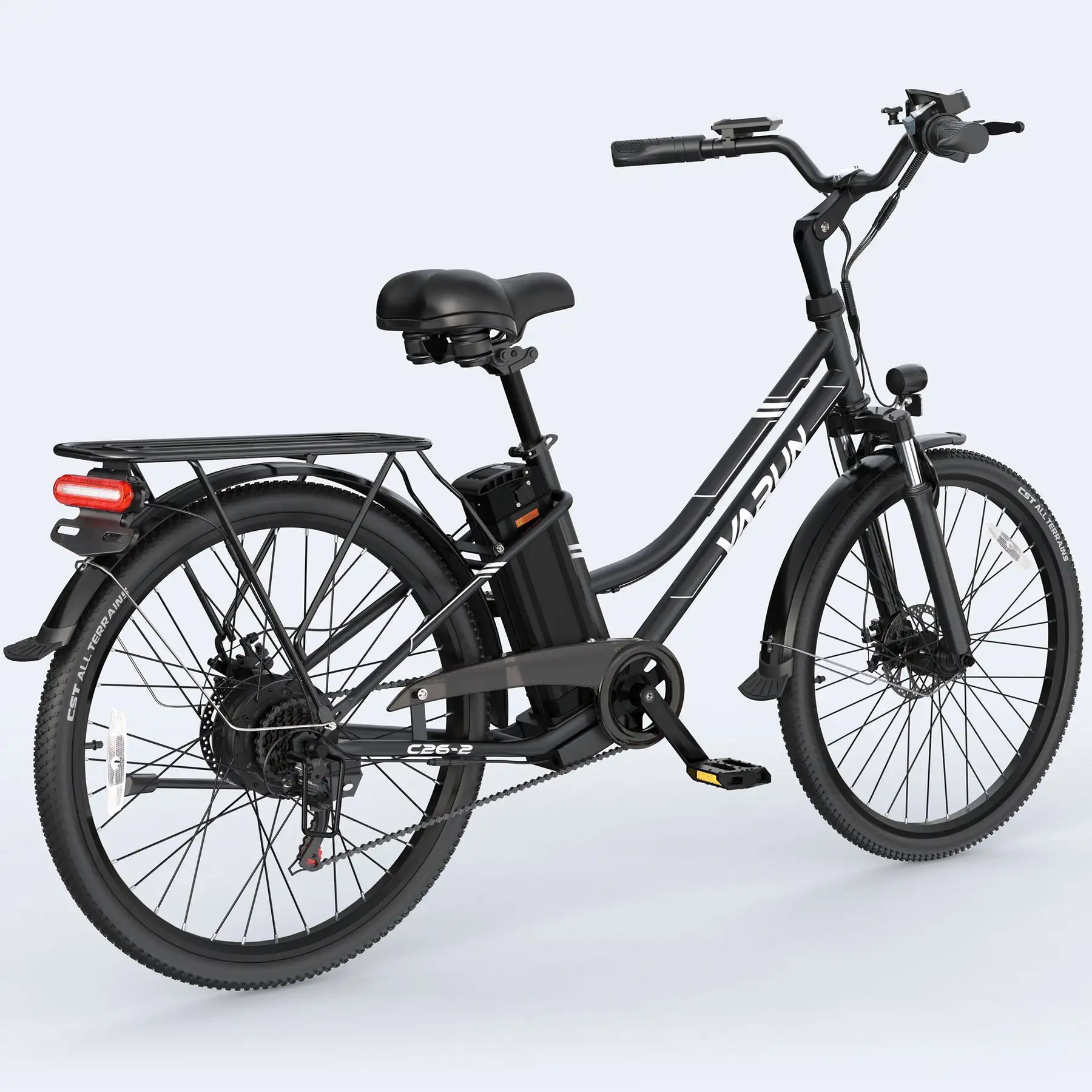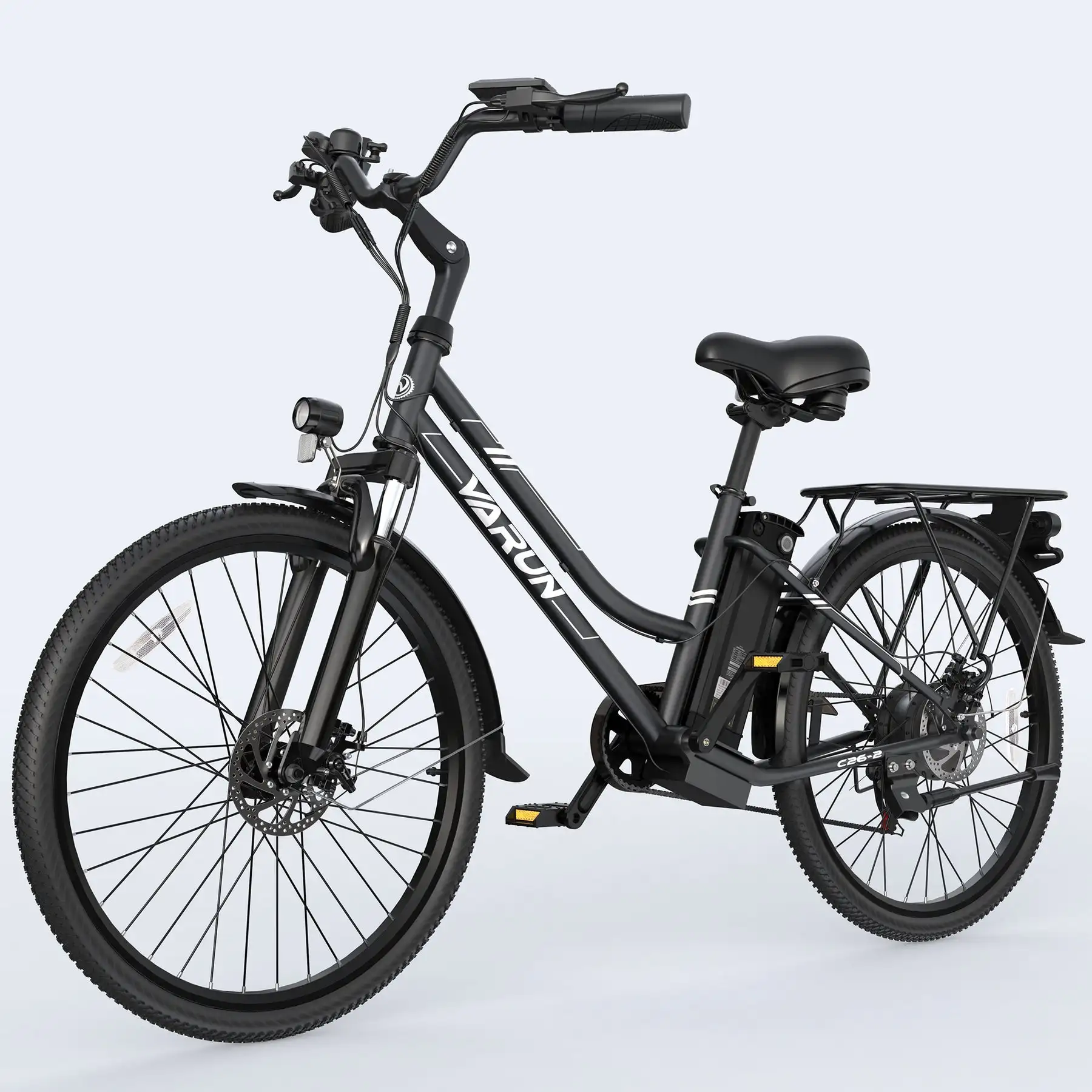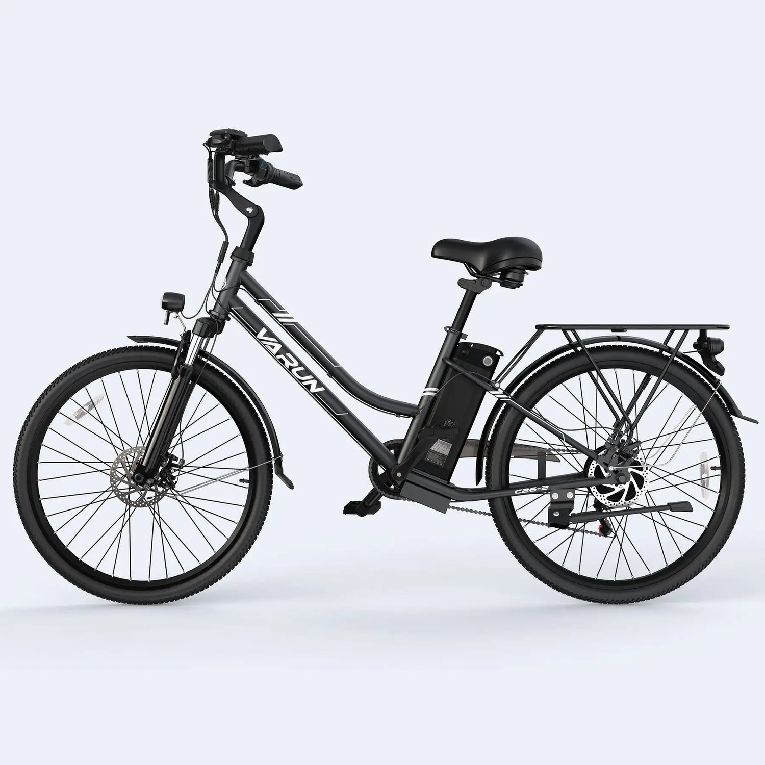 VARUN C26 Electric Commuter Bike with 250W Rear Hub Motor Integrated Lithium Battery 50KM Range-Black