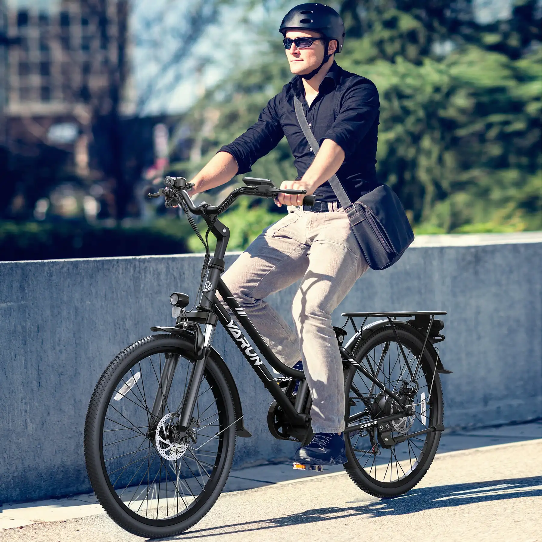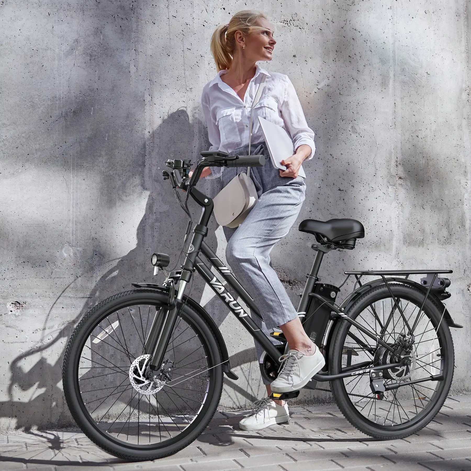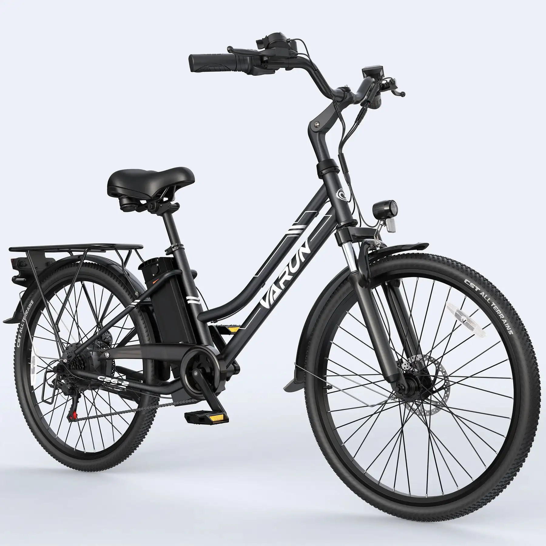VARUN C26 Electric Commuter Bike with 250W Rear Hub Motor Integrated Lithium Battery 50KM Range-Black