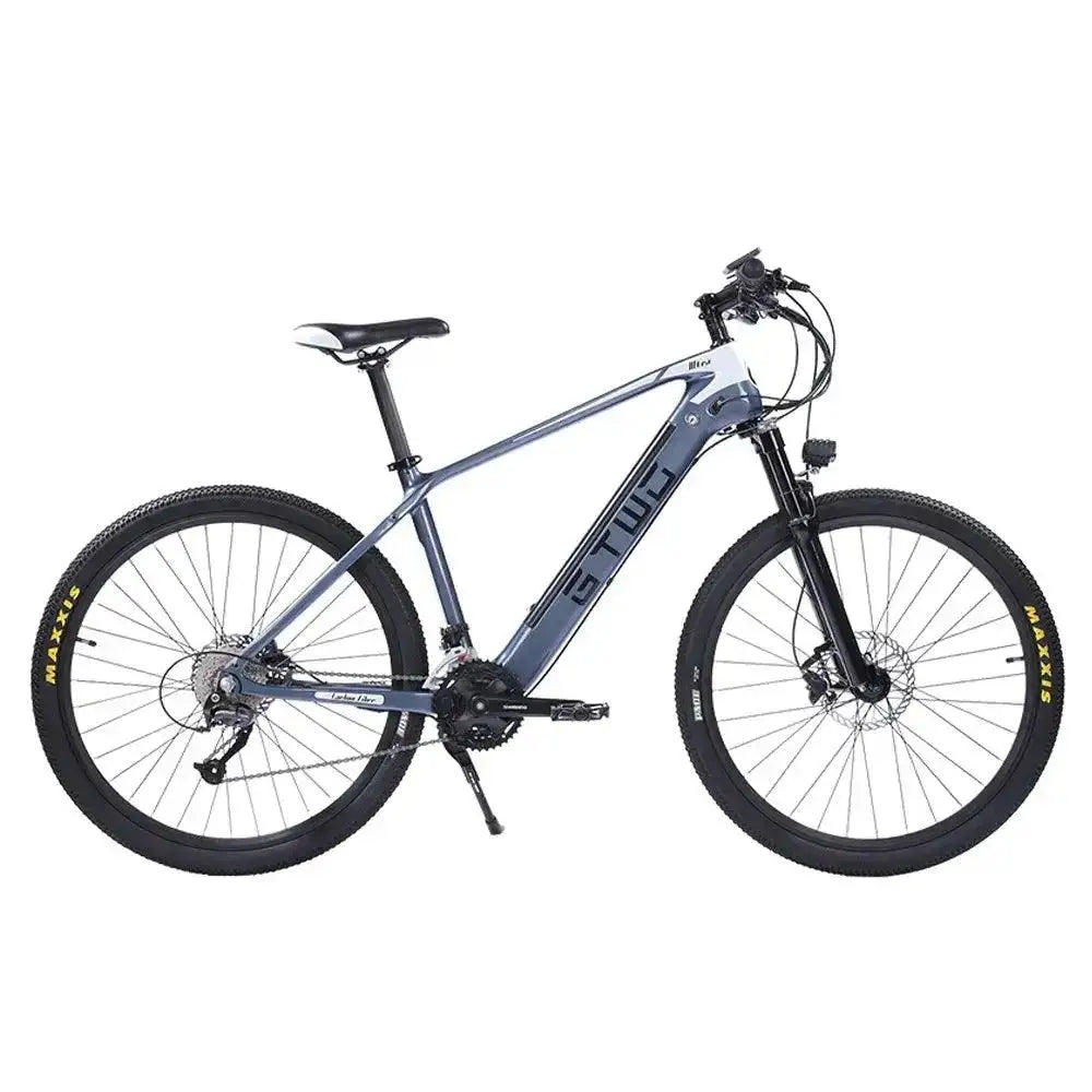 GTWO G1: Carbon Elegance, Unmatched Performance. Meet the GTWO G1, a revolutionary electric bike reshaping urban commuting. Whether you’re exploring rugged terrains or cruising on scenic paths, this bike offers exceptional power and versatility. Key features include a powerful Bafang 500W motor delivering 65Nm torque capable of conquering 35° inclines, a removable 48V9.6Ah battery with up to 90 km range, an air shock absorber with an extended 20 mm stroke for improved comfort, Shimano Hydraulic brakes for precise stopping, and Maxxis 27.5x2.1 tires that provide robust grip and stability. Other highlights are a Shimano 27-speed gear system for smooth shifting, a lightweight yet durable carbon fiber frame, a smart 3.6” LCD sport display that provides real-time ride data, three riding modes (Pedal Assist, Fully Electric, Manual) with adjustable assistance levels, and a 2-Way Charging System that enhances convenience. Experience a bike that masterfully blends style with performance.
