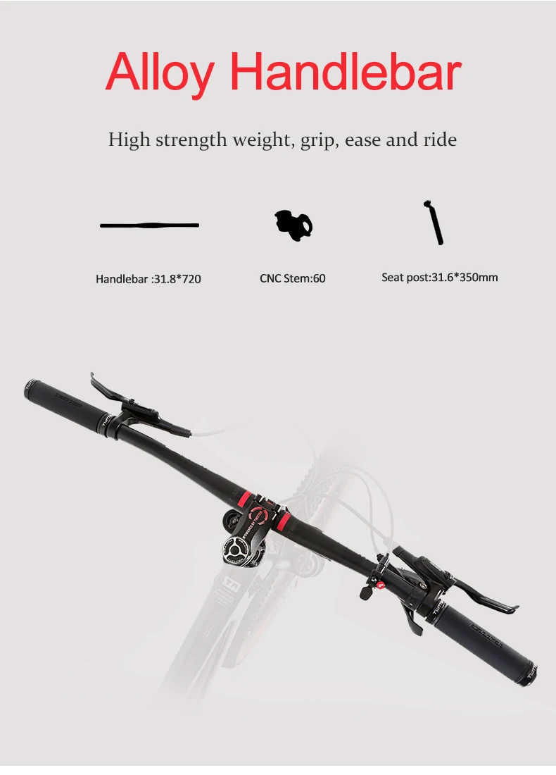 TW Alu alloy,Matte with water-decals,Handlebar 31.8×720,CNC Stem 60mm,Seat post 31.6×350mm