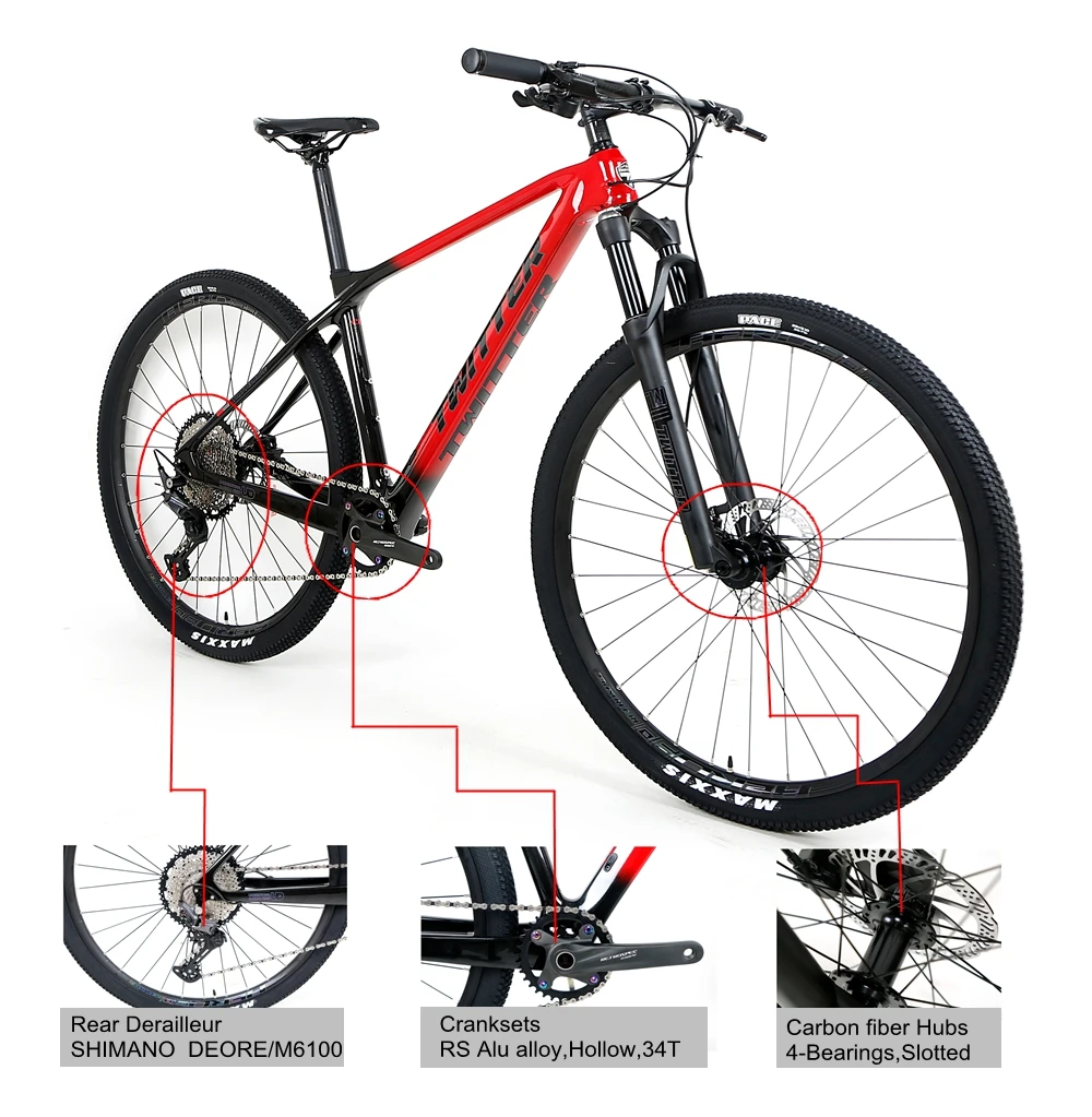 China Factory Carbon Fiber Bike Mtb Twitter predator Mountain Bike with SHlMANO DEORE/M6100-12S Groupset