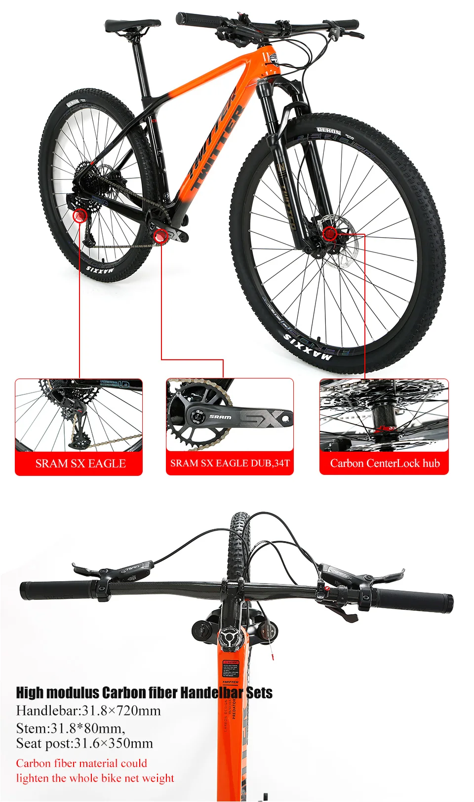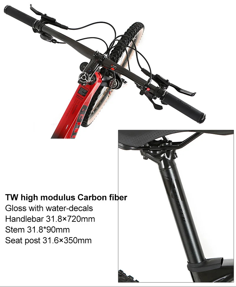 TW Alu alloy,Matte with water-decals,Handlebar 31.8×720,Stem 90mm,Seat post 31.6×350mm |