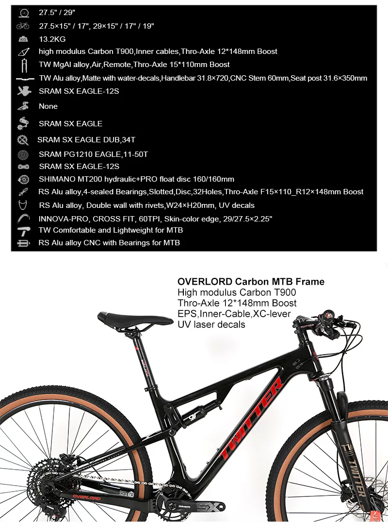OVERLORD, high modulus Carbon T900,Inner cables,Thro-Axle 12*148mm Boost,KS rear shox 165*38(35), UV laser decals |