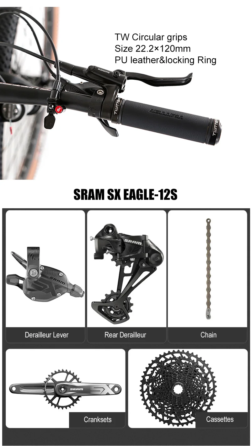 TW Alu alloy,Matte with water-decals,Handlebar 31.8×720,CNC Stem 60mm,Seat post 31.6×350mm |