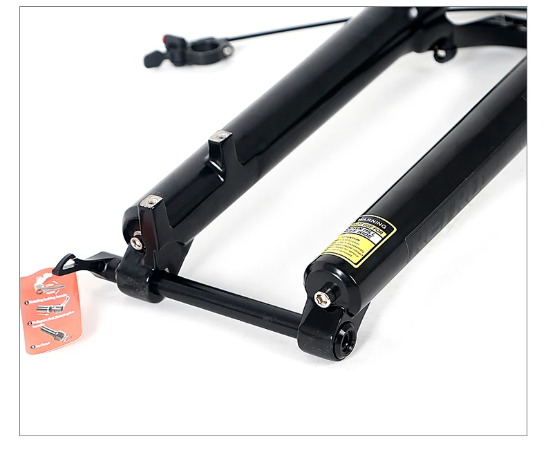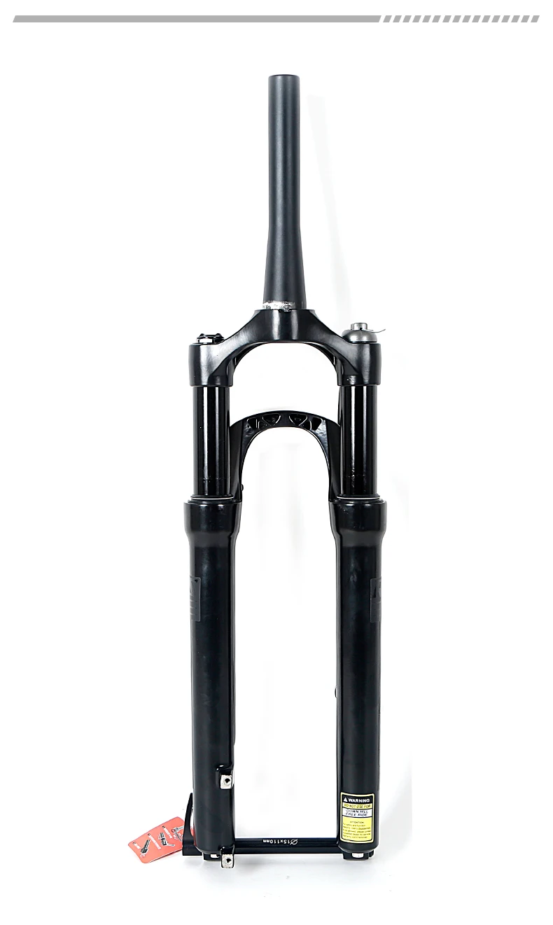 Brand:RETROSPEC Model/Name:RS6 air suspension BOOST mtb Fork(Remote,Tapered) Size:29" / 27.5" Fork color:Black Material:MgAl alloy lower tube, Alu alloy crown&stanchion&steerer Specs:Air suspension, Remote, Disc brake,Travel 100mm, tapered Steer tube 28.6*39.8*205mm, Stanchion 34mm, Thru-axle15*110 or 100mm Process:Black strenghting stanchion, Gloss paint, UV sticker Weight:about 1.91KG