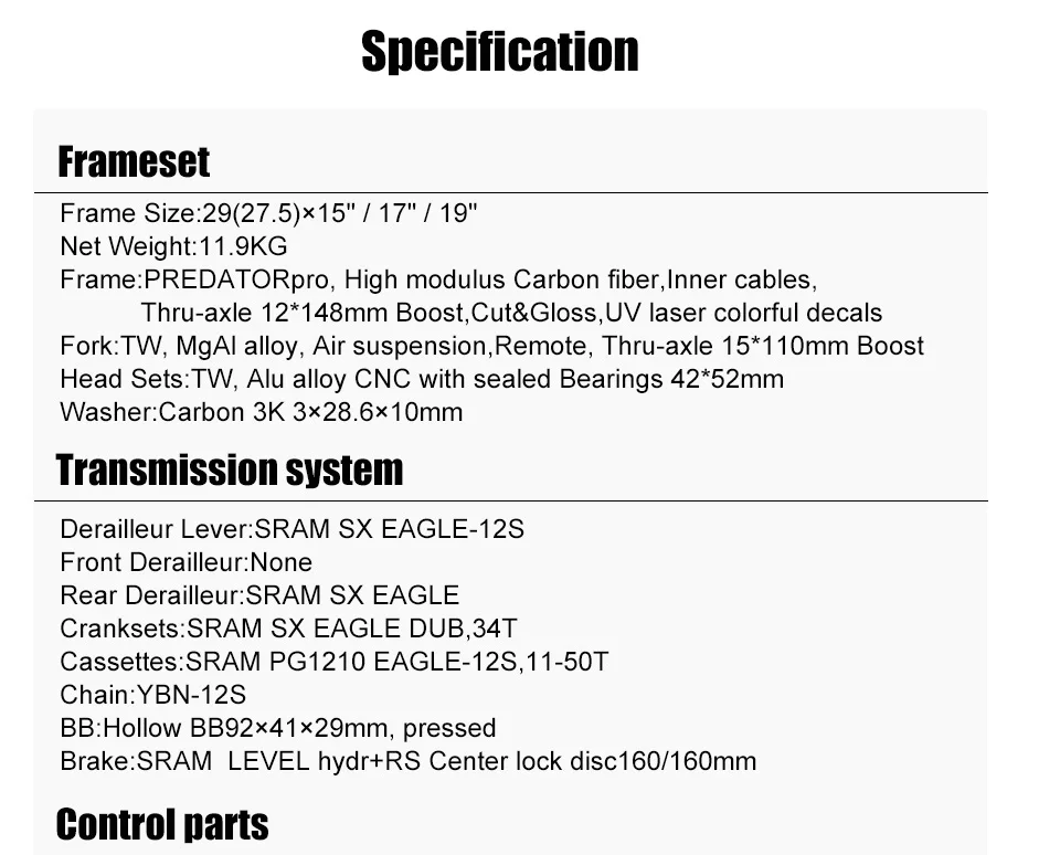 PREDATORpro, High modulus Carbon fiber,Inner cables,Thru-axle 12*148mm Boost,Cut&Gloss,UV laser colorful decals |