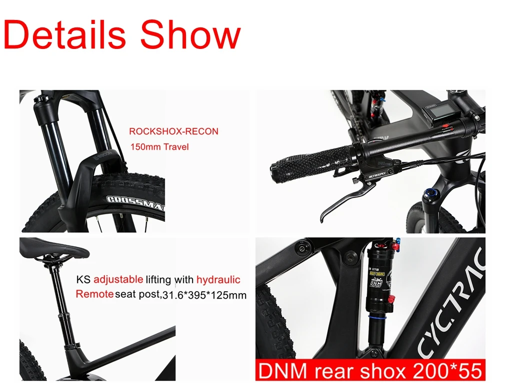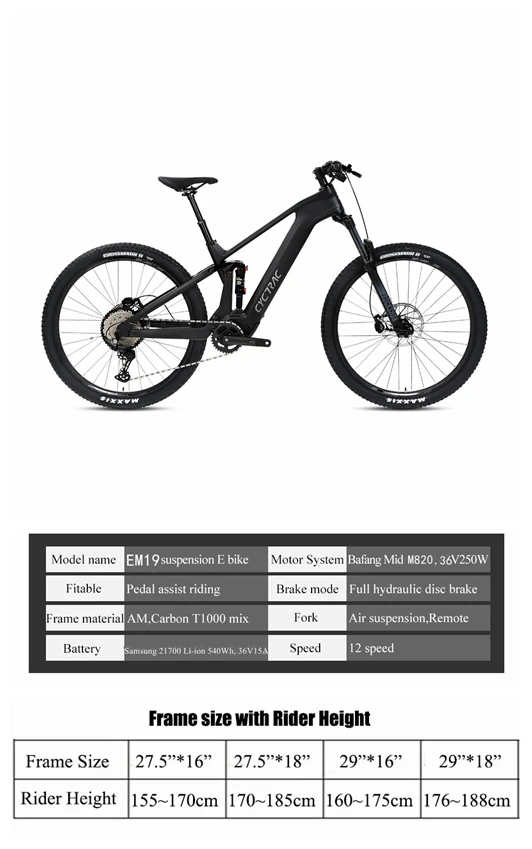 CYCTRAC, EM19, AM, High modulus Carbon fiber,Inner cables,Thru-axle12*148 Boost,140mm Travel, DNM rear shox200*55, UV laser decals |