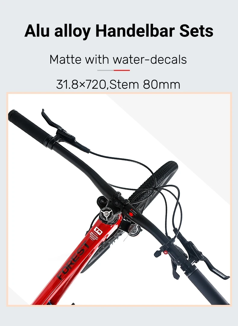 TW Alu alloy,Matte with water-decals,Handlebar 31.8×720,Stem 80mm,Seat post 31.6×350mm |