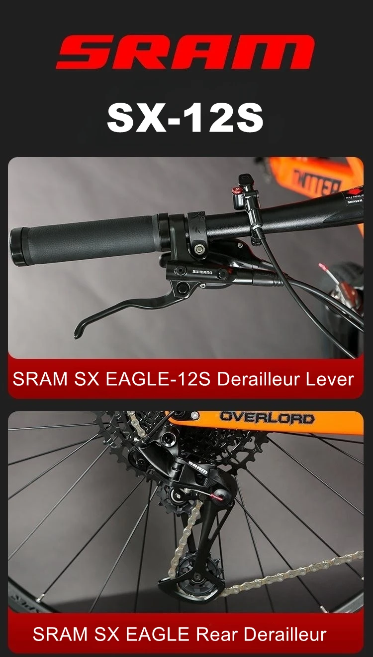 OVERLORD(22new), AM, high modulus Carbon fiber,Inner cables,Thru-axle 12*148mm Boost,DNM rear shox 165*35,UV laser colorful decals |