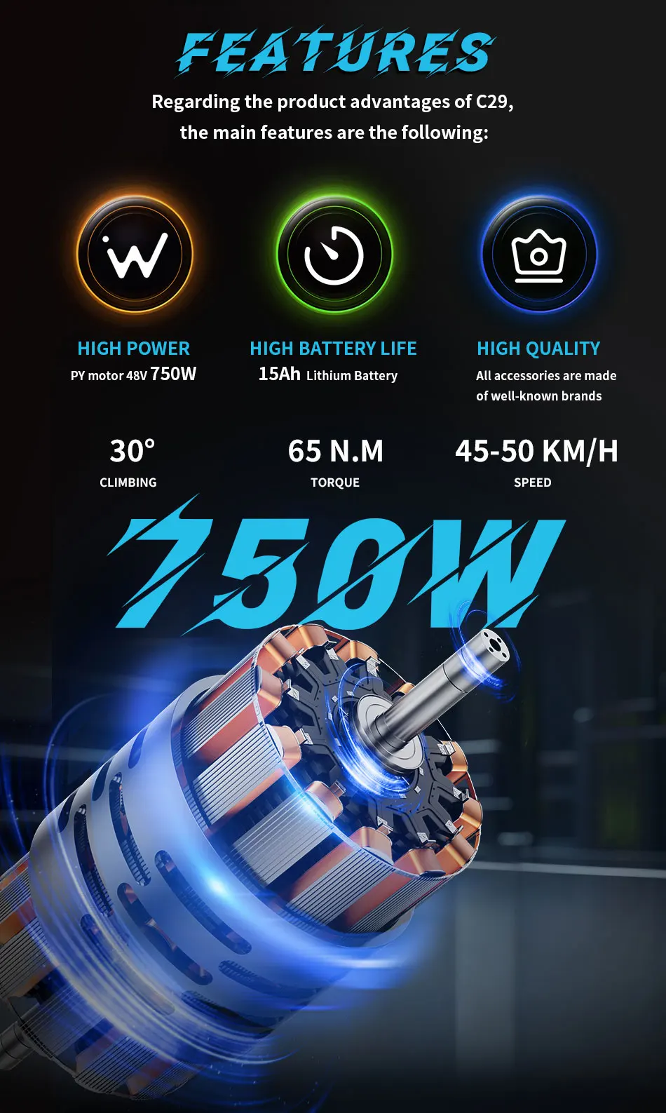 OFF- ROAD city EU Warehouse Stock C29 Dual Battery Electric Bicycle Ebike Hybrid Electric Mountain Dirt E Bike for Adults - 3*250W / Blue is backordered and will ship as soon as it is back in stock.