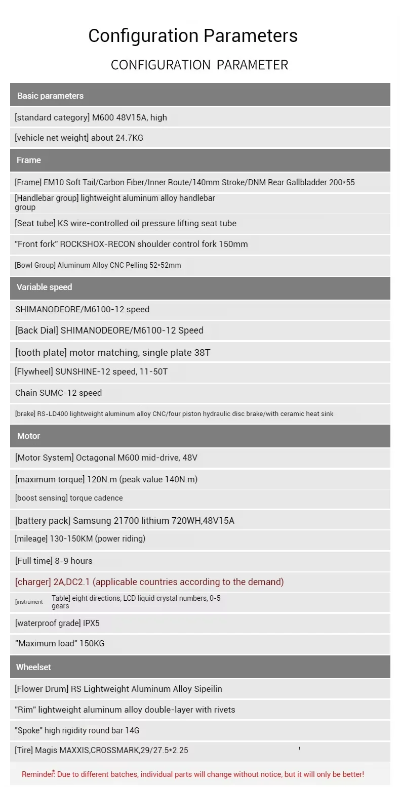 Samsung 21700 Li-ion, 720Wh, 48V15A |