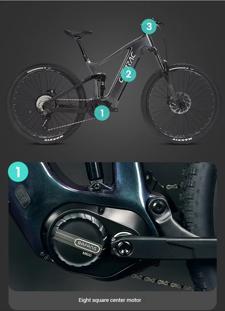 2025 EM10 Bafang 500W Power Supply Electric Mountain Bike for Men 48V Carbon Fibre Frame 48V Lithium Battery Central Electric