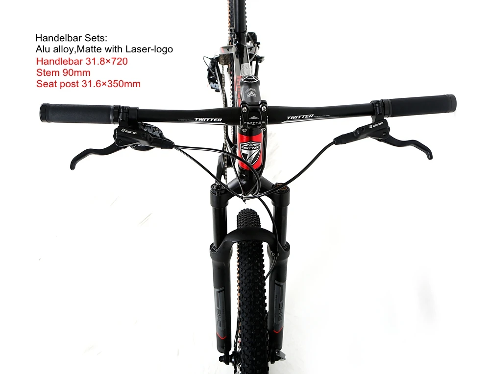 TW Alu alloy,Matte with Laser-logo,Handlebar 31.8×720,Stem 90mm,Seat post 31.6×350mm |