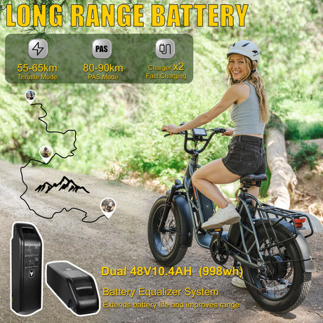 E·Bycco 26'' EB7PRO Dual Motor 2000W Peak 3000W 52V 23Ah Power for Adults Adult Electric Bike