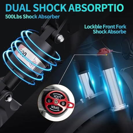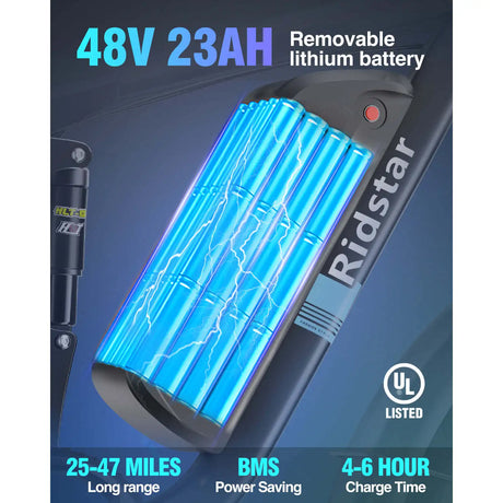 RIDSTAR Q20 20" Fat Tires Electric Mountain Bike 500W Motor 48V 15Ah Battery Max Speed 48km/h