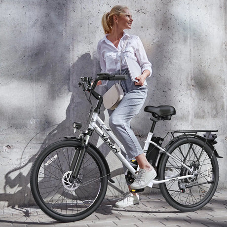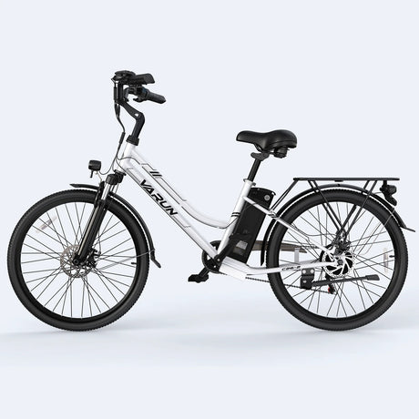 VARUN C26 Electric Commuter Bike White Color for City Use