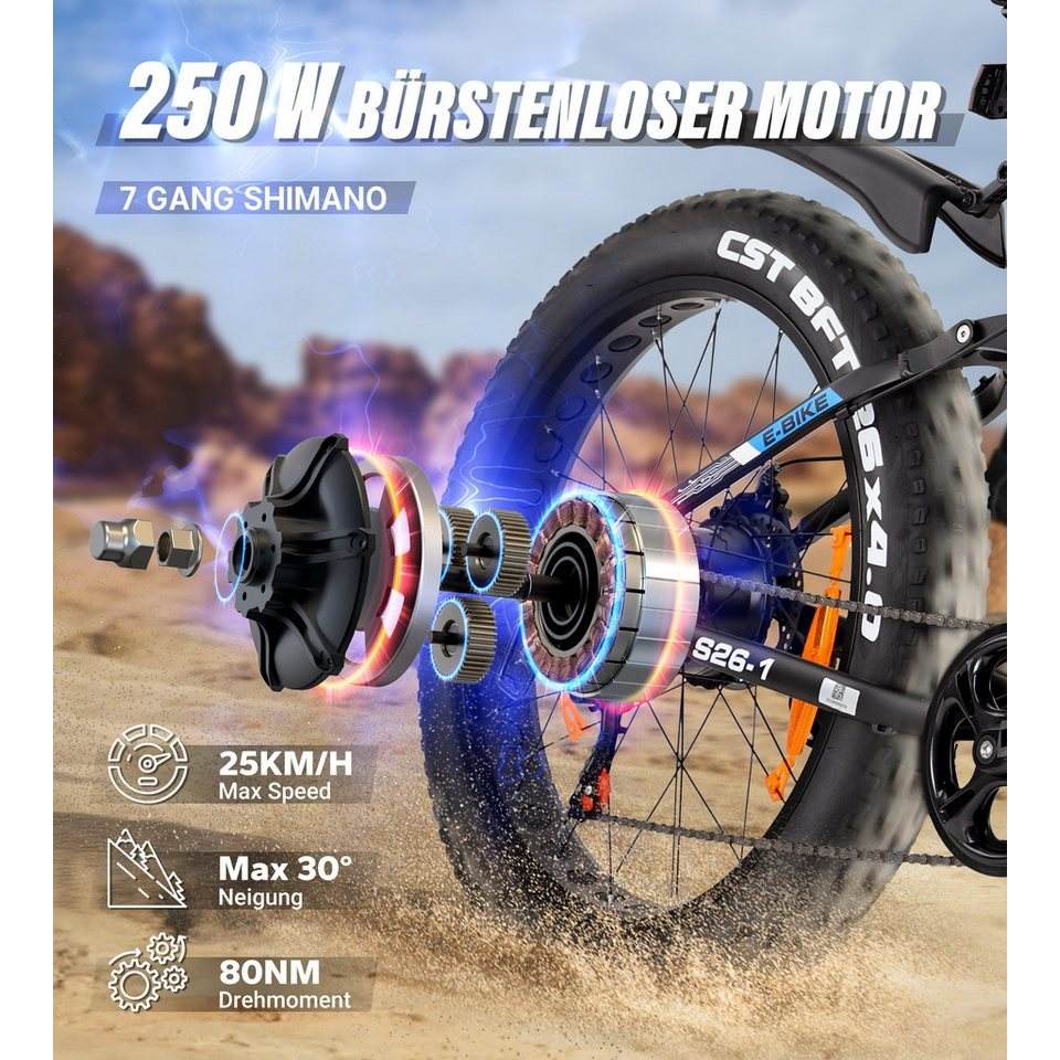 Das elektrofahrrad für erwachsene mit High-Speed bürstenlosen Motor ist perfekt für Off-Road, anspruchsvolle steile Hügel und lange Strecken fahren. Bietet reichlich Leistung für Ihren täglichen Pendelverkehr, Stadtfahrten oder Fahrten in anspruchsreicherem und schwierigem Gelände (wie Berge, Schnee, Strand, Dschungel, etc.). Verzichten Sie nicht auf überlegenes Fahrvergnügen im Gelände.
