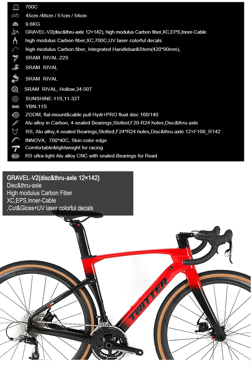 2021 New Model Twitter Gravel-V2 Road Bike 700C Twitter Gravel Bike Carbon Road Bicycle Gravel