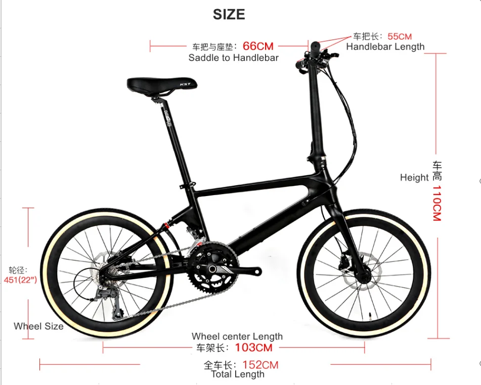 Twitter F451 Folding Bike Carbon Fiber 22 Speed Hybrid Disc Brake Foldable Bicycle