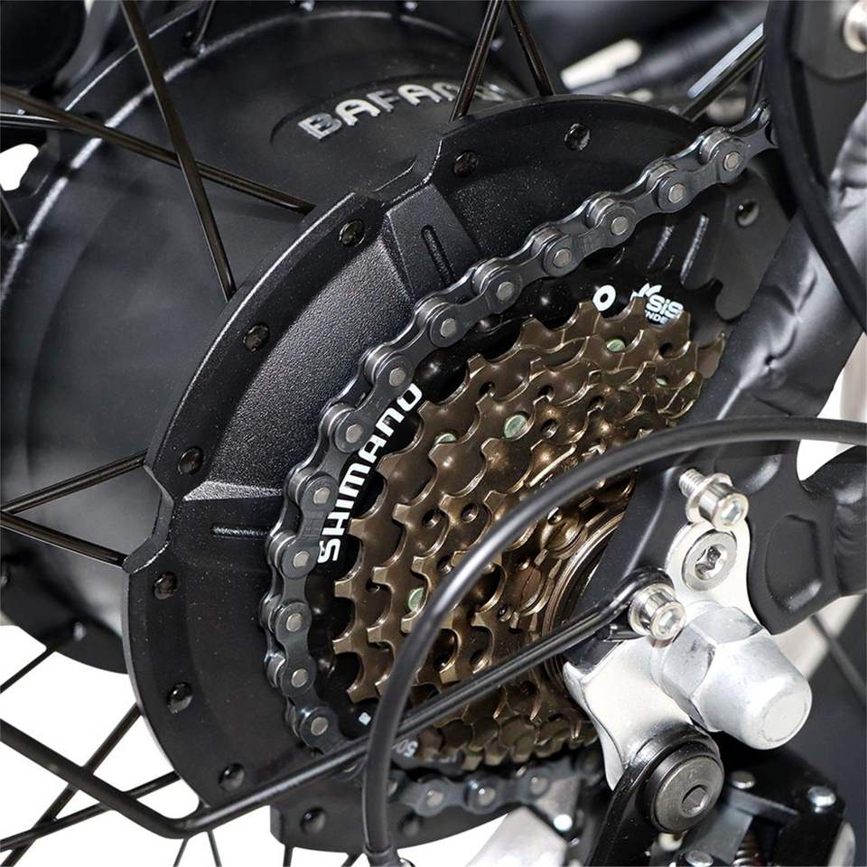 Motor: 250W Bafang Battery: 48V13Ah Li-ion Charger: 54.6V2A UL Display: Color display 4” Frame: 6061 al alloy Fork: alloy suspension Lo Brakes: Hydraulic Disk XOD Tyres: 20*4.0 KENDA Gears:SHIMANO 7-speed Max.speed:20mph Load capacity:120kgs N.W ./G.W.:33kg/38kg Carton Size: 138*28*68cm
