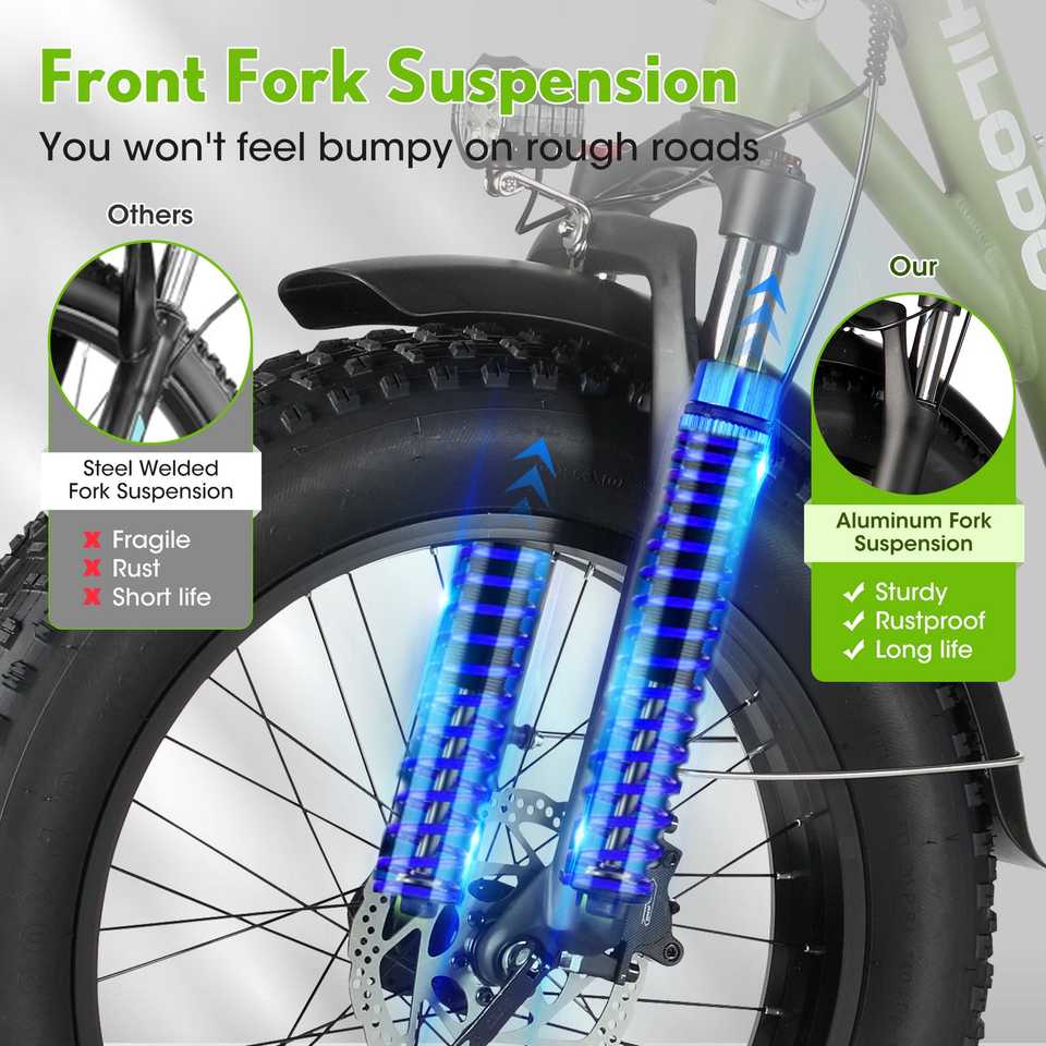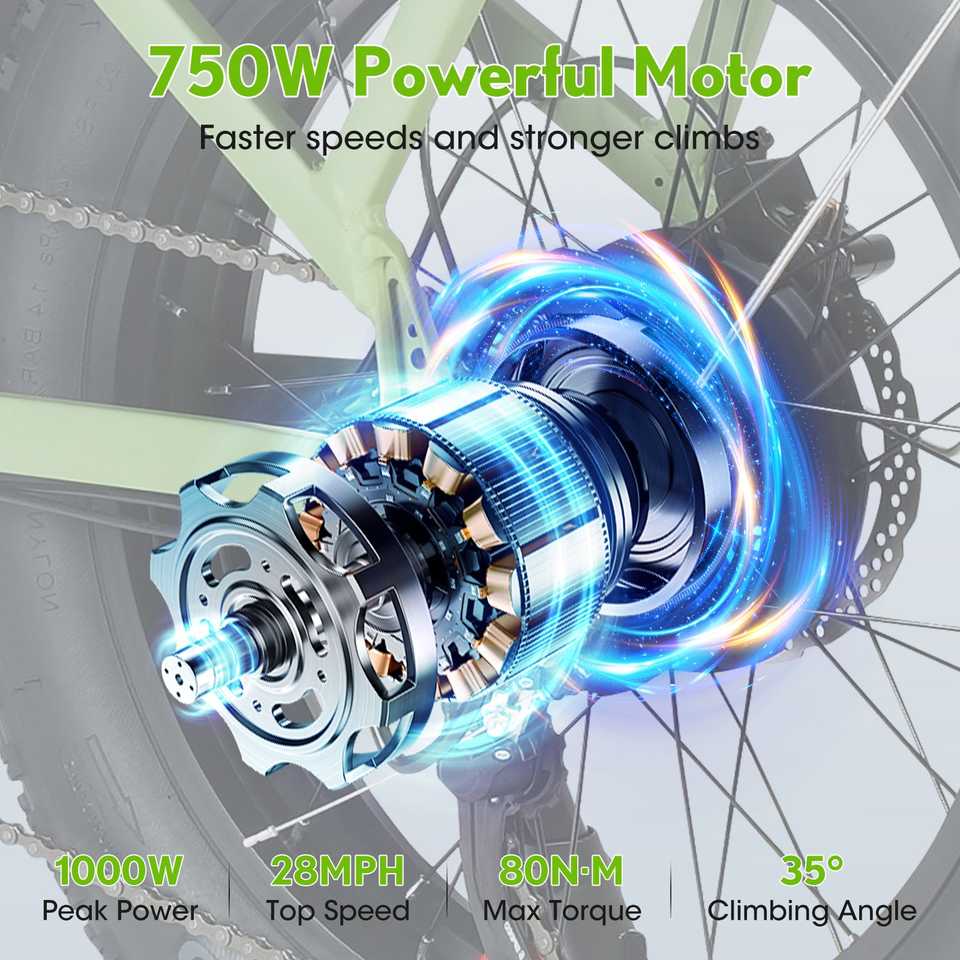 | Specifications | 48V 20Ah Fat Tire Ebike Single Motor AWD 750W 15.6MPH Electric Bicycles 7-Speed Hydraulic Disc Brake-Green |
