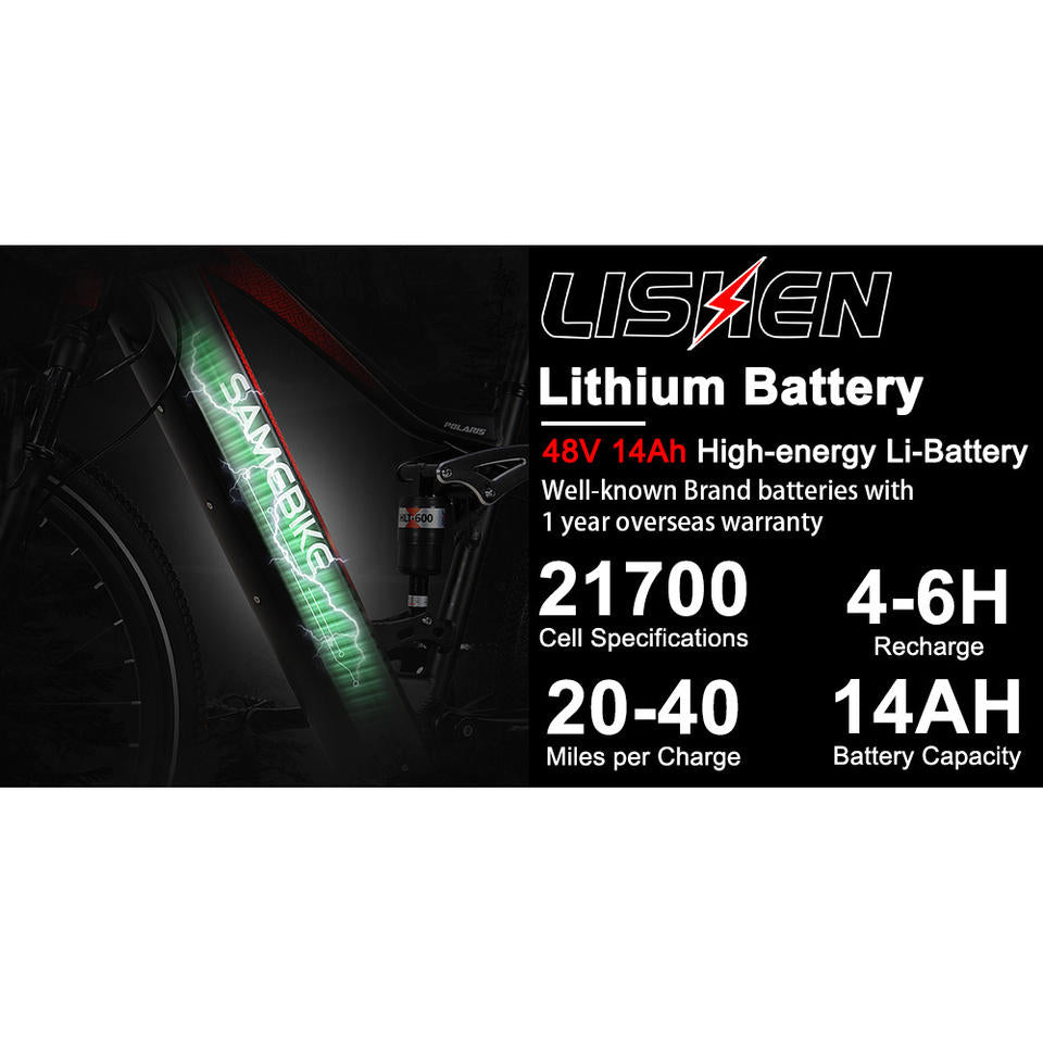 For SAMEBIKE XD26-II Hybrid Electric Bike with 48V 14Ah Lithium Battery 750W Motor 45KM/H Max Speed Hydraulic Brakes